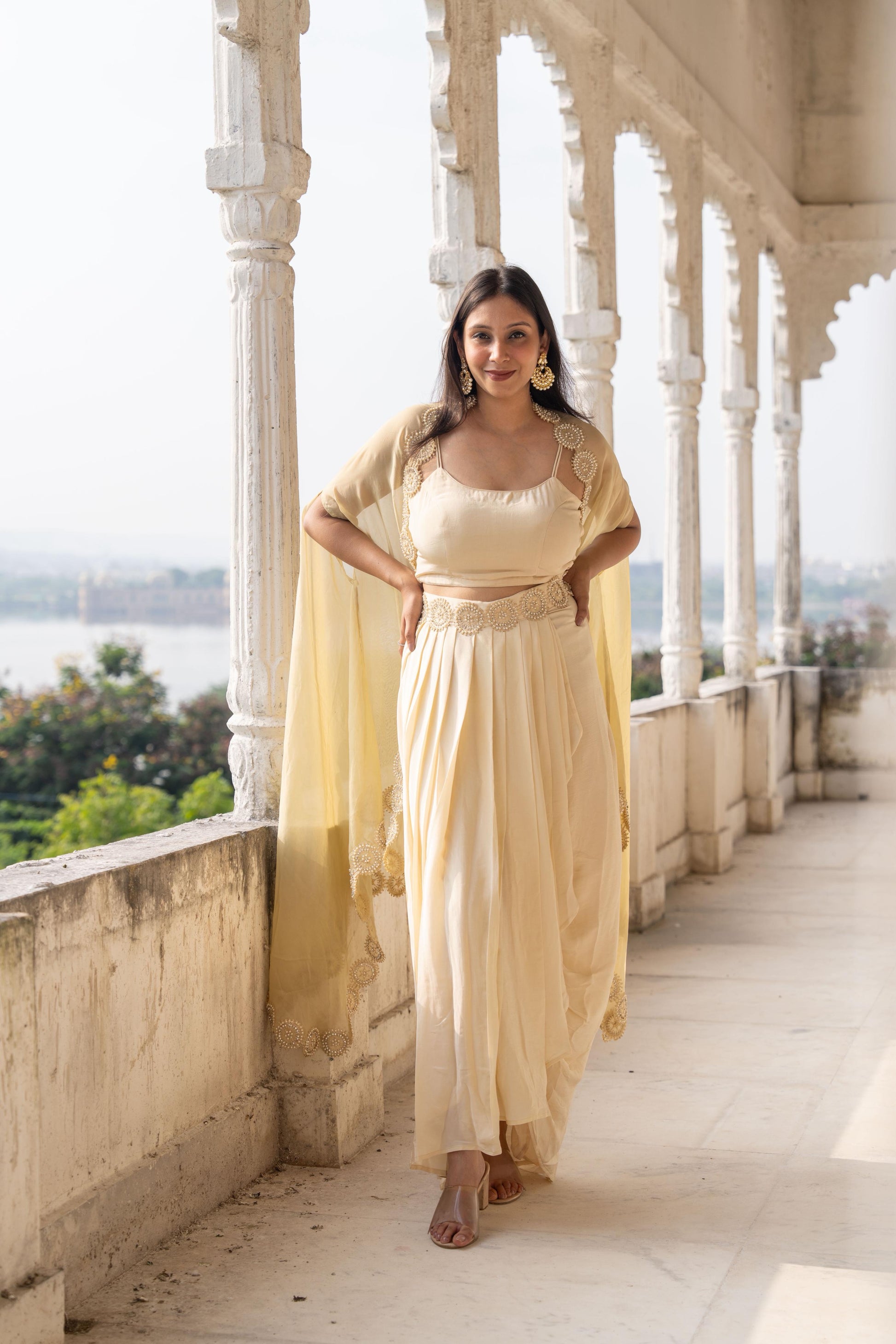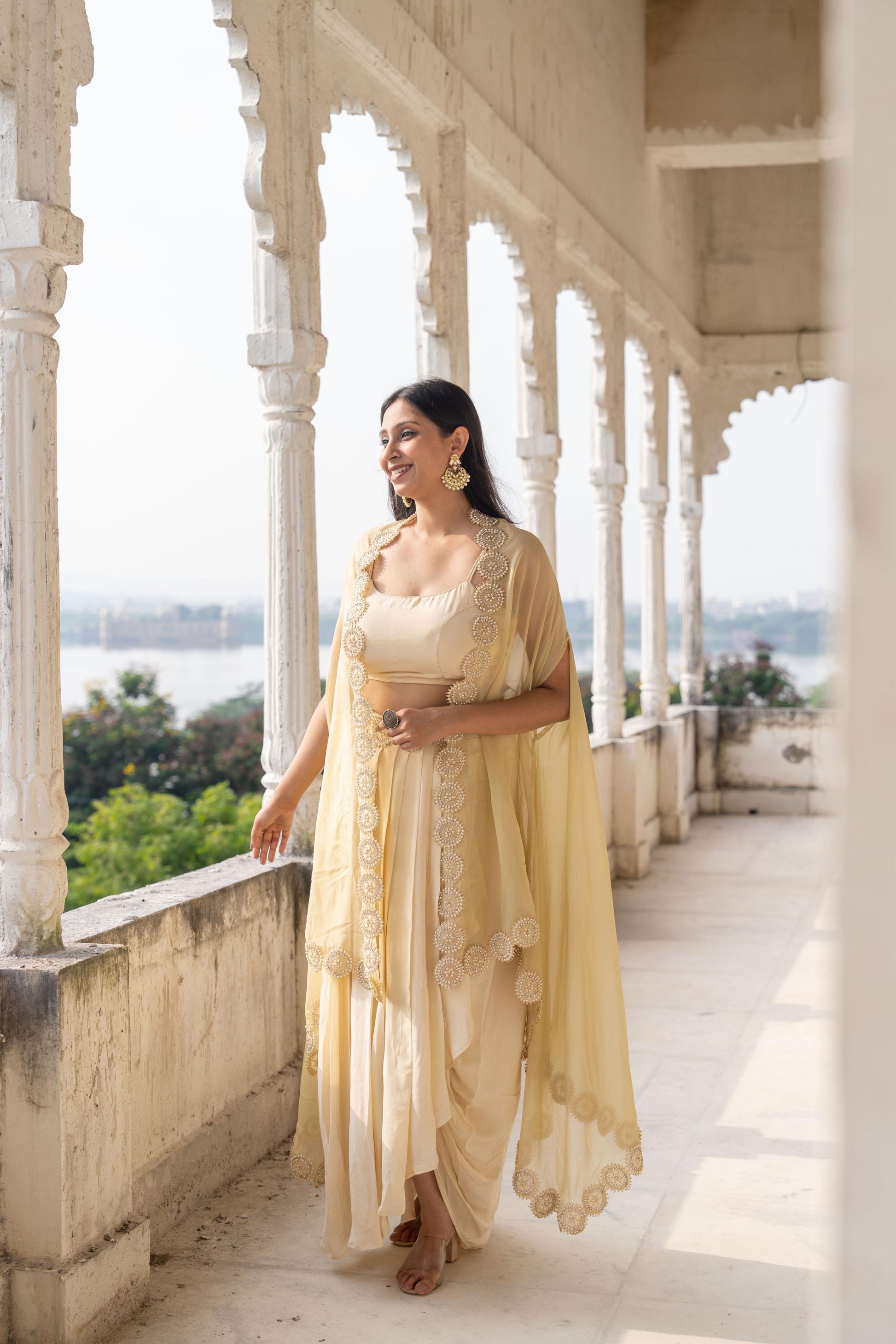 Saanjh - A Designer Ivory Draped Dhoti Skirt Set